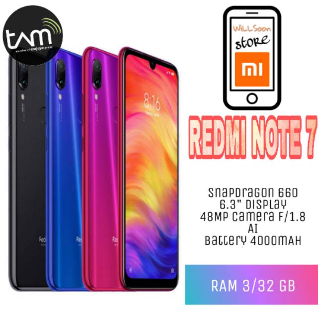 Xiaomi Redmi Note 7 Ram 3 32gb Garansi Resmi Tam 18 Bulan Bnib