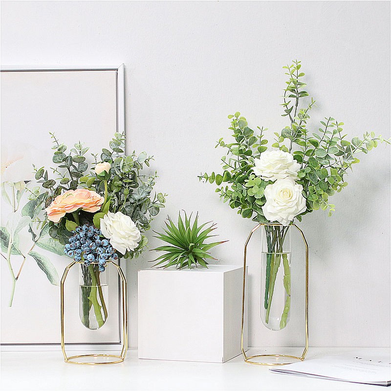 Lesing artificial flowers with vase fake silk flowers in vase gardenia flowers decoration for home table office party (champagne).