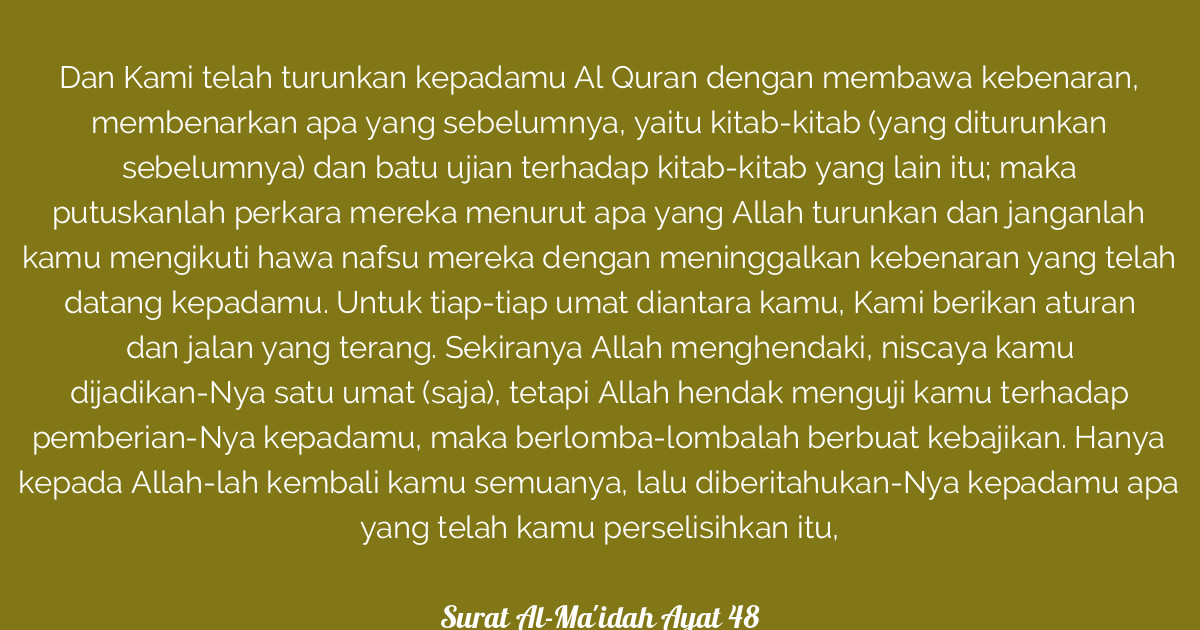Itulah ayat ke 48 surat al maidah untuk anda baca sehari hari, semoga bermanfaat.